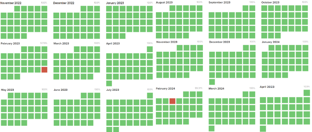 كان العام التالي تحسنا كبيرا مقارنة بالعام السابق ، ولم يكن مثاليا ، ولكنه مثير للإعجاب. ترتبط معظم هذه الأخطاء بافتقار Solana إلى سوق رسوم متطور. كان تنفيذ سوق الرسوم خلال هذه الفترة أحد الأسباب الرئيسية التي دفعتني إلى التحول إلى Solana ، حيث مهد الطريق للاستقرار التام في العام التالي: