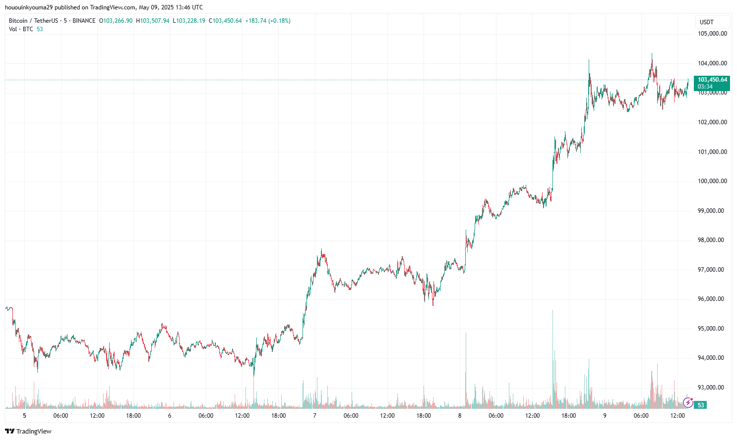 في وقت كتابة هذا التقرير، يتم تداول البيتكوين حول 103,500 دولار، بزيادة تقارب 7% في الأسبوع الماضي.