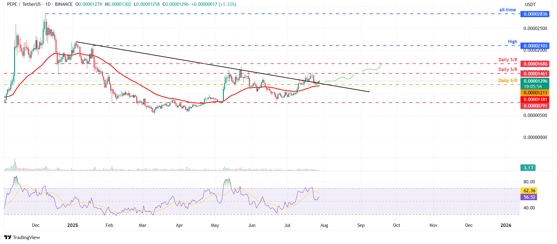 PEPE توقعات الأسعار: إعادة اختبار منطقة الدعم الرئيسية