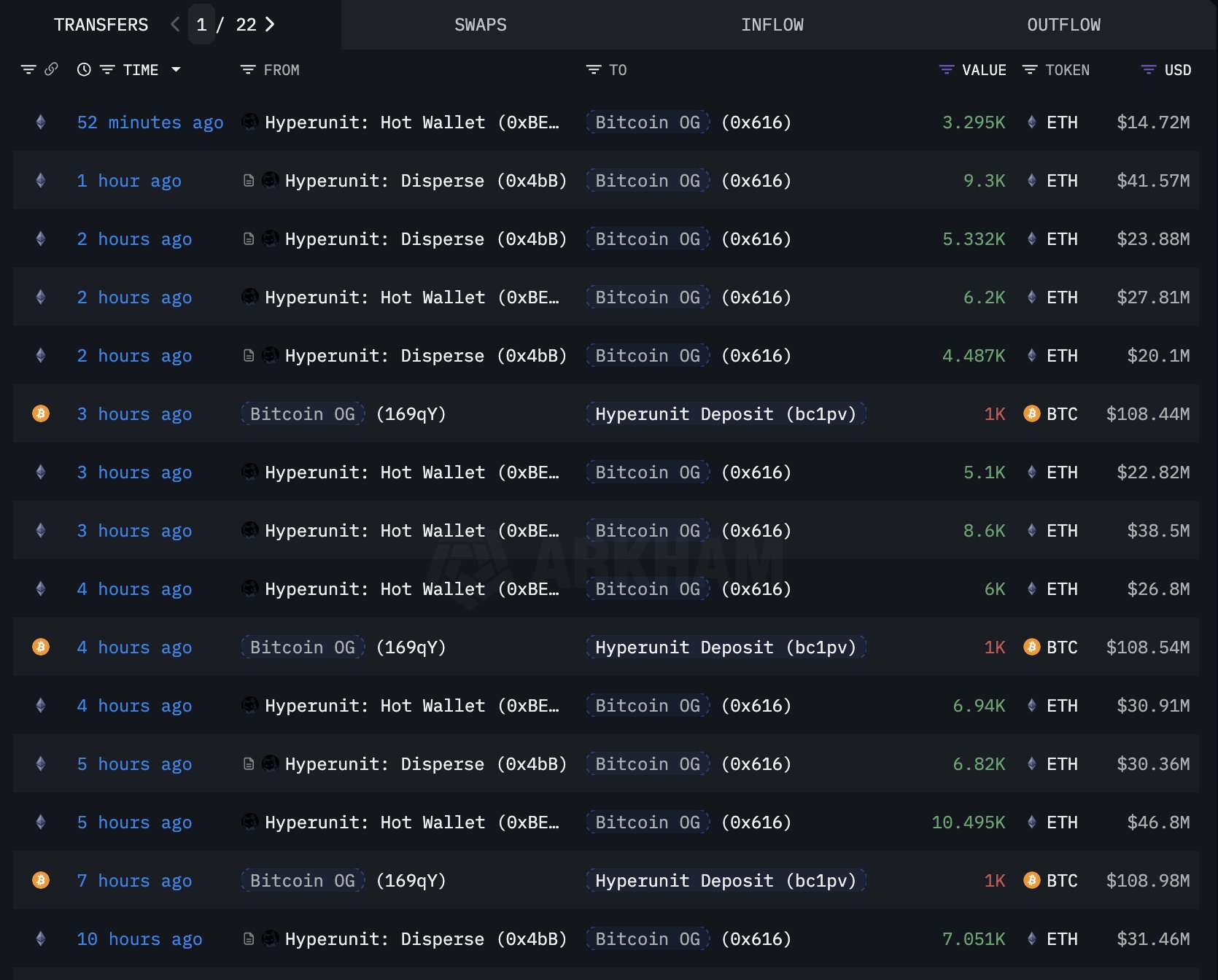وفقًا لبيانات منصة المراقبة داخل السلسلة Lookonchain، بدأ هذا الحوت الكبير في بيتكوين بتحويل جزء من قيمة 11.4 مليار دولار من BTC إلى ETH منذ أغسطس. فقط في عطلة نهاية الأسبوع الماضية، قام ببيع 4000 BTC (حوالي 435 مليون دولار) مقابل 96859 ETH.