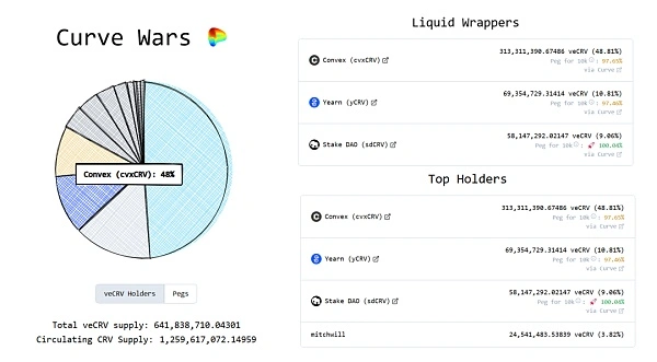 في المقابل ، من أجل التنافس على التحكم في السيولة على Curve ، أصدرت بروتوكولات الطبقة الثانية مثل Convex و Yearn و StakeDAO جميعها ملف veCRV ملفوف خاص بها ، حيث يتم فصل سمة الإيرادات وسمة الحوكمة. في البداية ، كانت شركة Yearn Finance و Stake DAO هما اللاعبان الرئيسيان في Curve ، حيث كانا يبيعان CRVs ميكانيكيا بمجرد حصولهما على مكافآت CRV.