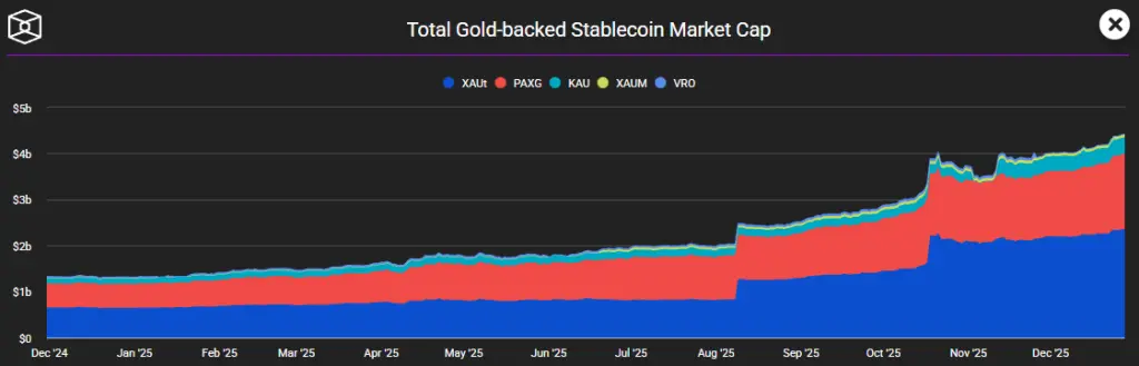 Популярность набирали и обеспеченные золотом «стабильные монеты». К декабрю капитализация семента превысила $4 млрд, прибавив за год почти $3 млрд.