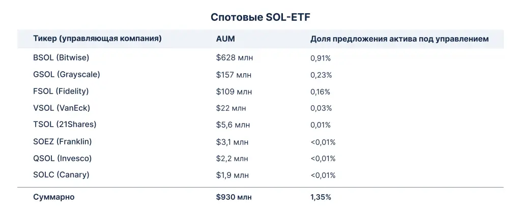 На следующий день Grayscale запустила ETF под тикером GSOL, который конвертировали из траста. 77% монет направляется в стейкинг. Фонды на Solana предлагают еще шесть компаний.