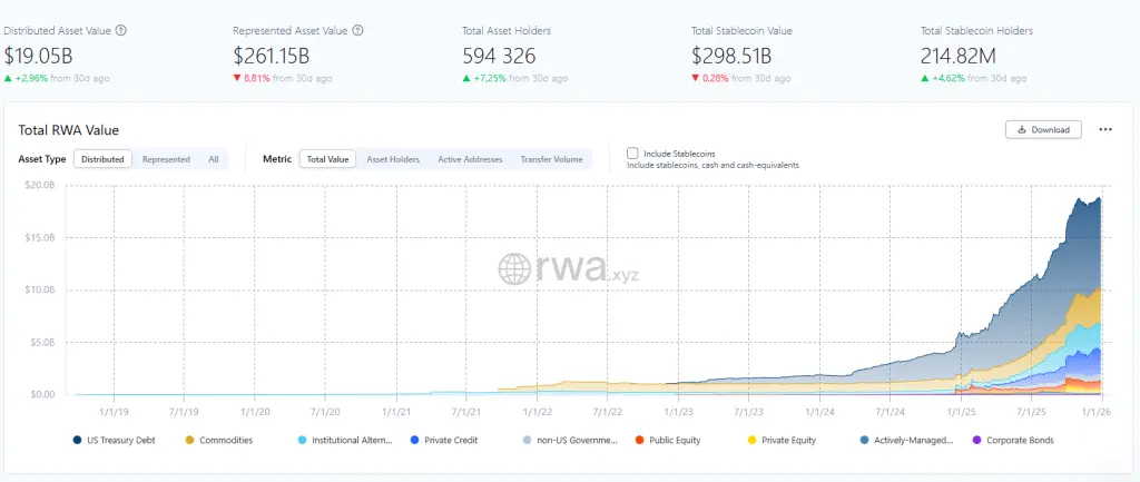 Данные по состоянию на 29 декабря 2025 года. Источник: RWA.xyz 429 подобных продуктов насчитывают свыше 590 000 держателей. Крупнейшим является направление частных кредитов. Следом идут казначейские облигации США.