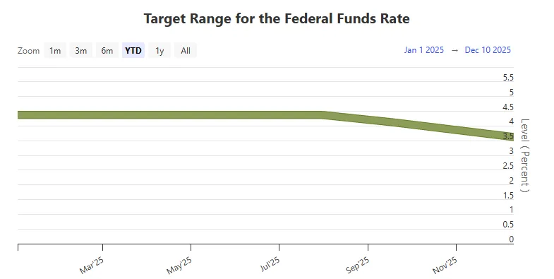 На протяжении лета ФРС сохраняла ставку в диапазоне 4,25–4,5%, однако 17 сентября регулятор принял решение о ее снижении на 25 б.п. Это значительно укрепило цену биткоина, которая к тому моменту провалилась к $110 000.