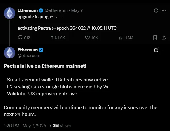 7 мая в мейннете Ethereum активировали апгрейд Pectra — крупнейший хардфорк в блокчейне по количеству предложений. Он включает серию улучшений, направленных на повышение удобства и эффективности Ethereum