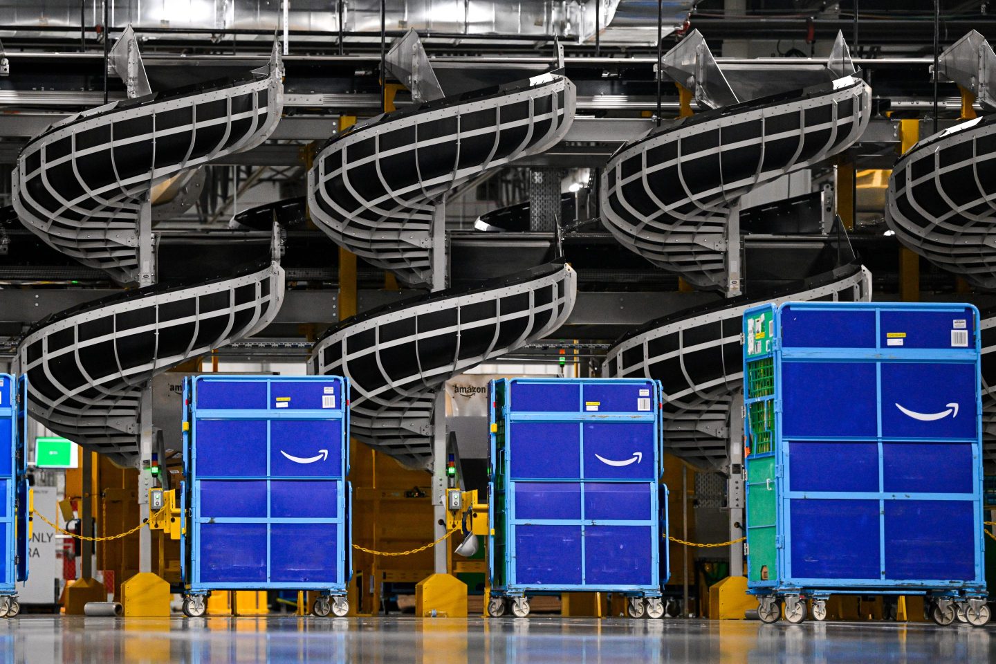 مركز تلبية الطلبات في أمازون مجهز بروبوتات في دايتونا بيتش، فلوريدا، عام 2025. ساعد تركيز الشركة على التقنية ولوجستيات التوزيع في جعلها قوة في البيع بالتجزئة.