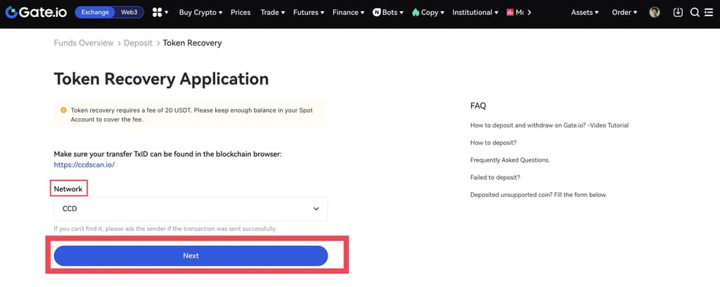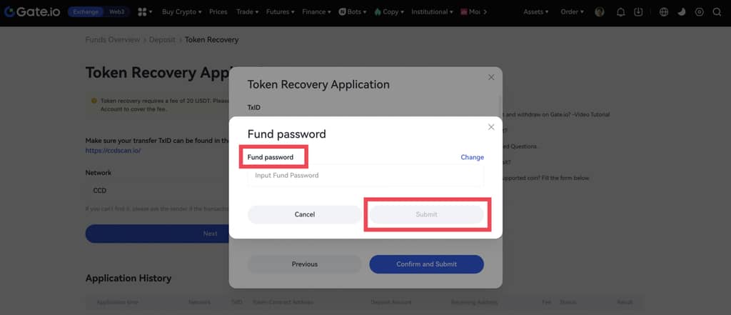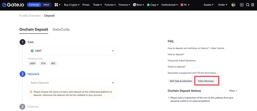 Afin d'améliorer l'expérience des utilisateurs, Gate a lancé une nouvelle fonctionnalité - la récupération des jetons. Si vous avez déposé des jetons non pris en charge, vous pouvez soumettre une demande de récupération pour récupérer vos jetons.