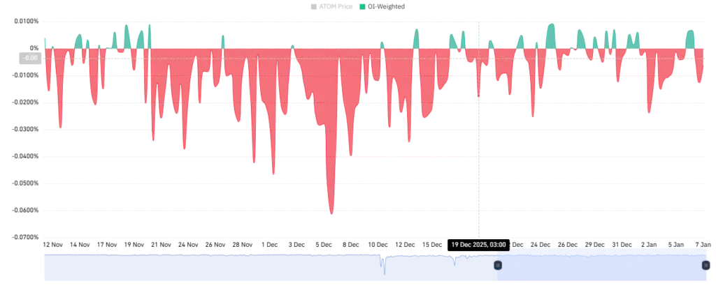 Étant donné que les métriques on-chain de l’ATOM indiquent une légère accumulation de pression de vente, les marchés à terme signalent également une baisse de confiance.