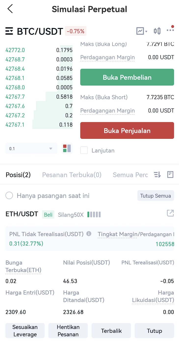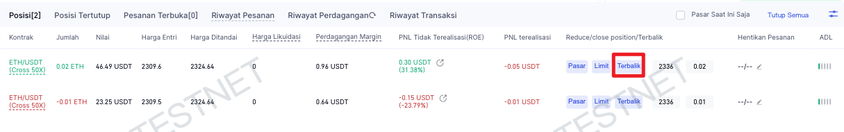 - Saat melakukan reverse posisi (termasuk Reverse dan Trigger Reverse), leverage dan jumlah posisi baru akan konsisten dengan posisi awal, tetapi sisinya akan berlawanan.