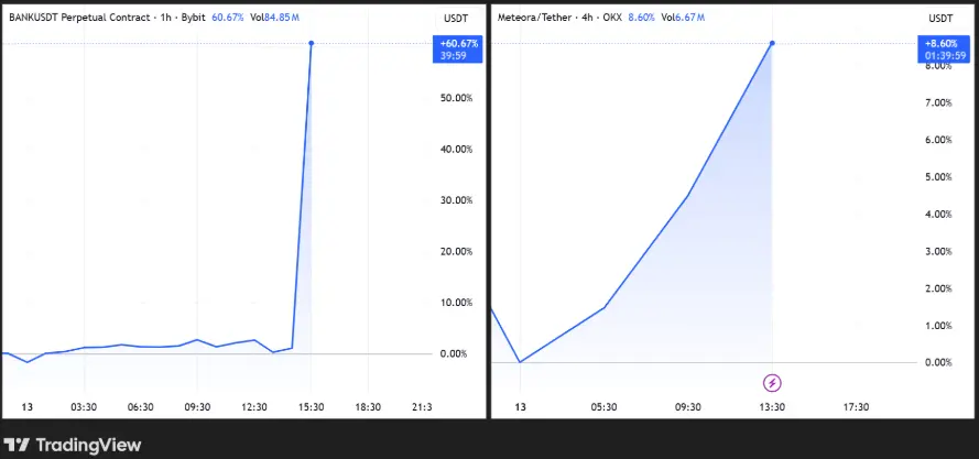 Harga BANK dan MET | Sumber: TradingViewDi sisi lain, MET telah melonjak sebesar 8% setelah pengumuman listing di Binance. Namun, Meteora menghadapi skeptisisme yang dipicu oleh kontroversi terbaru yang menghubungkannya dengan Donald Trump. Sebuah dompet yang terkait dengan presiden AS dilaporkan menerima MET senilai $4,2 juta, sebelum memindahkannya ke OKX.