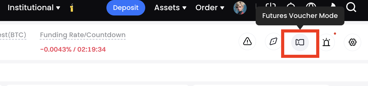 - 先物クーポン内の資金とご自身の口座資金は相互に独立しています。先物クーポンを使用する前に、先物クーポンモードに切り替える必要があります。