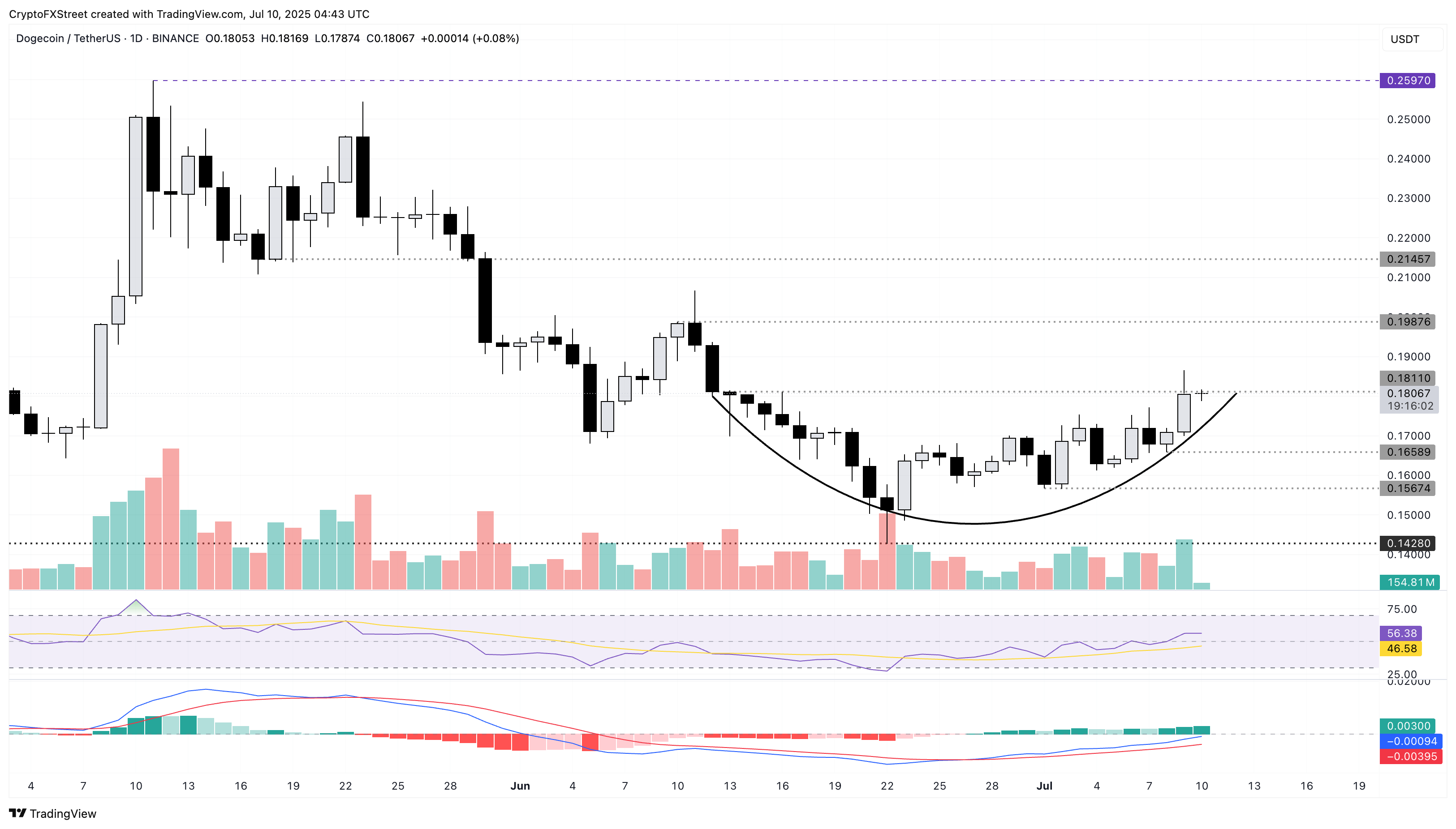 FXStreet のアナリスト Vishal Dixit は、木曜日の発表時点で DOGE の動向が依然として不明瞭であると述べ、前日 5.61% 上昇した後に十字星を形成したと報告しています。0.1811 米ドルの重要な抵抗レベルは、円底のネックラインとして、DOGE の反発に短期的な緩衝を提供する可能性があります。