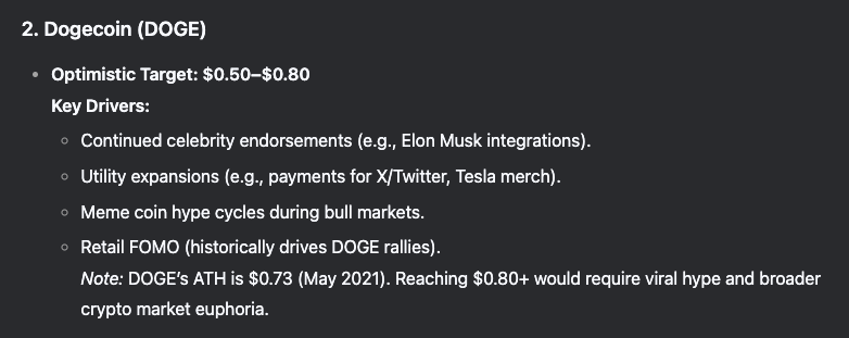 DeepSeekの予測によれば、2025年末までにDOGEの価格は0.80ドルに達する可能性があり、現在の価格の4倍に相当します。