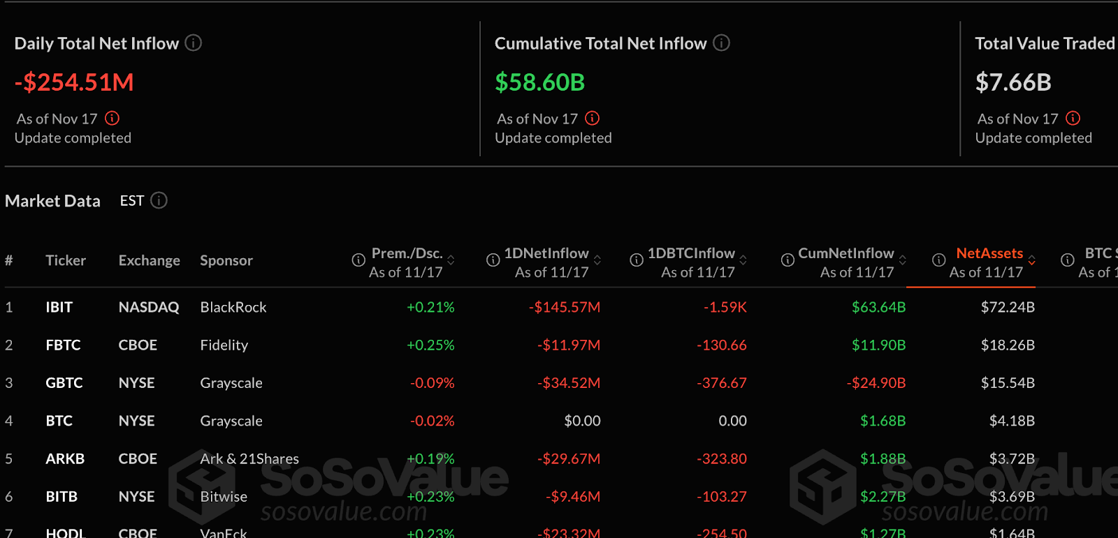 デジタル資産ファンド全体での大規模な償還が続く中、景気後退が訪れました。先週だけで、暗号ETPは$2 億の流出を記録し、これは2月以来の最大規模です。ブラックロックのIBITは11月14日に$463 万の単日最大引き出しを記録し、流出傾向は続いています。