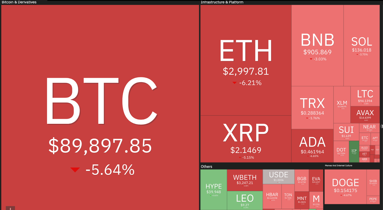 ビットコインは火曜日に$89,253に一時急落し、4月以来の最低水準となりましたが、その後$90,000を少し上回って反発しました。しかし、BTCは現在、当日で5%以上、年初来で3%下落しており、10月の史上最高値$126,080によってもたらされた利益を消し去っています。