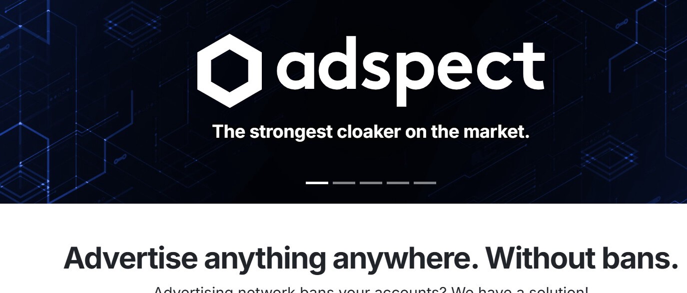 そのウェブサイトによると、Adspectは広告キャンペーンを不要なトラフィックから保護するために設計されたクラウドベースのサービスを宣伝しています。これには、クリック詐欺やアンチウイルス会社からのボットが含まれます。また、"弾丸proofのクローク"を提供し、"すべての広告プラットフォームを信頼性高くクロークする"と主張しています。