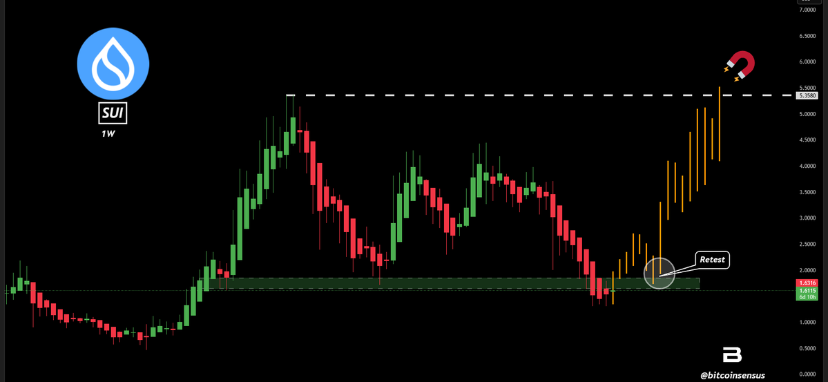 SUIが週足でのリクレイムを確認し、主要なレジスタンスを上抜けた場合、予測通り$2.50以上への道が急速に開かれます。歴史的に、SUIは失敗した下落からのトラップ流動性をクリアすると急激に上昇する傾向があります。