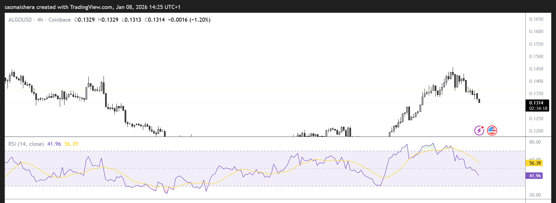 テクニカルな見通しは、ALGOが近い将来$0.15レベルに達する可能性を示唆しています。