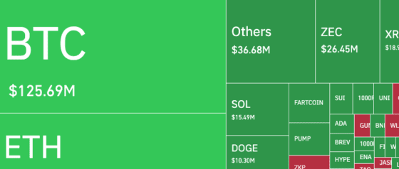 CoinGlassのデータによると、過去24時間でビットコイン市場の約1.2469億ドルのポジションが清算され、そのうち約82.14%がロングポジションだった。全体のデジタル資産市場では、4.0951億ドル規模の清算が発生した。