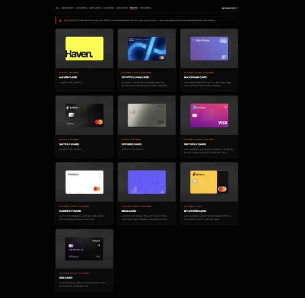 現在マーケティングされている「免KYC」カードの例(プリペイドとビジネスカードの両方を含む)のリストは、https://www.todey.xyz/cards/で確認できる。