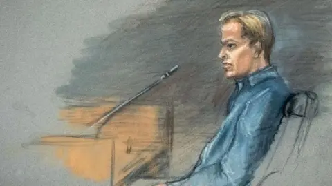 裁判の早い段階でマリウス・ボルグ・ホイビーを描いた裁判スケッチ