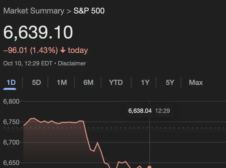 By midday Friday, the S&P 500 had fallen 1.43% to 6,639, giving up all of its weekly gains. The Nasdaq slid roughly 2%, and the Dow Jones Industrial Average lost 1%, extending the sell-off sparked by Trump's social media comments. He accused China of "hostile actions," claiming Beijing was preparing to impose export controls on rare earth elements and other key materials critical to global supply chains.