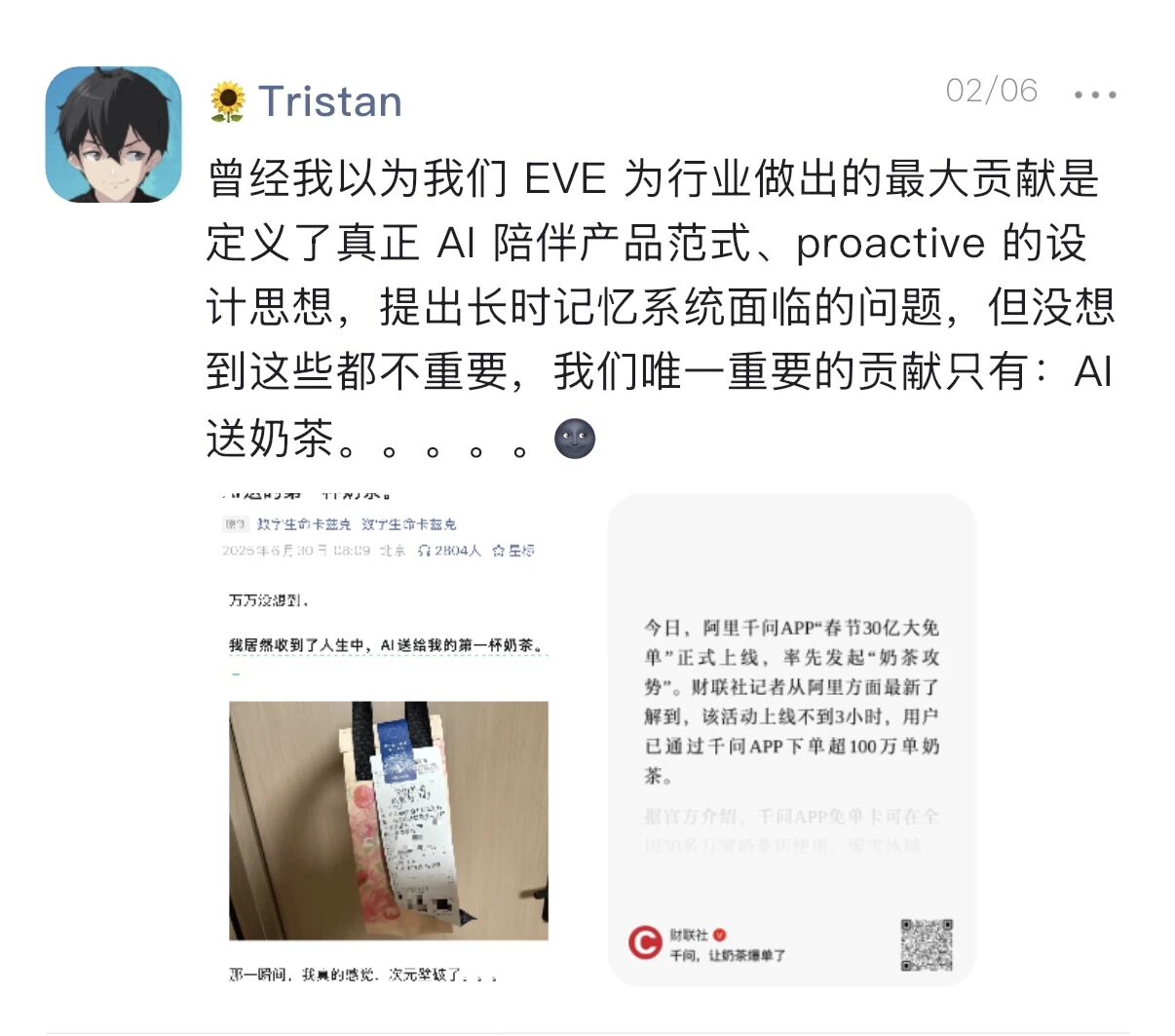 Natural Selection is an AI startup based in Shenzhen, which recently completed a $30 million funding round supported by Alibaba, Ant Group, and others. Previously, their AI companion product EVE once gained attention for having an AI boyfriend buy milk tea for users.