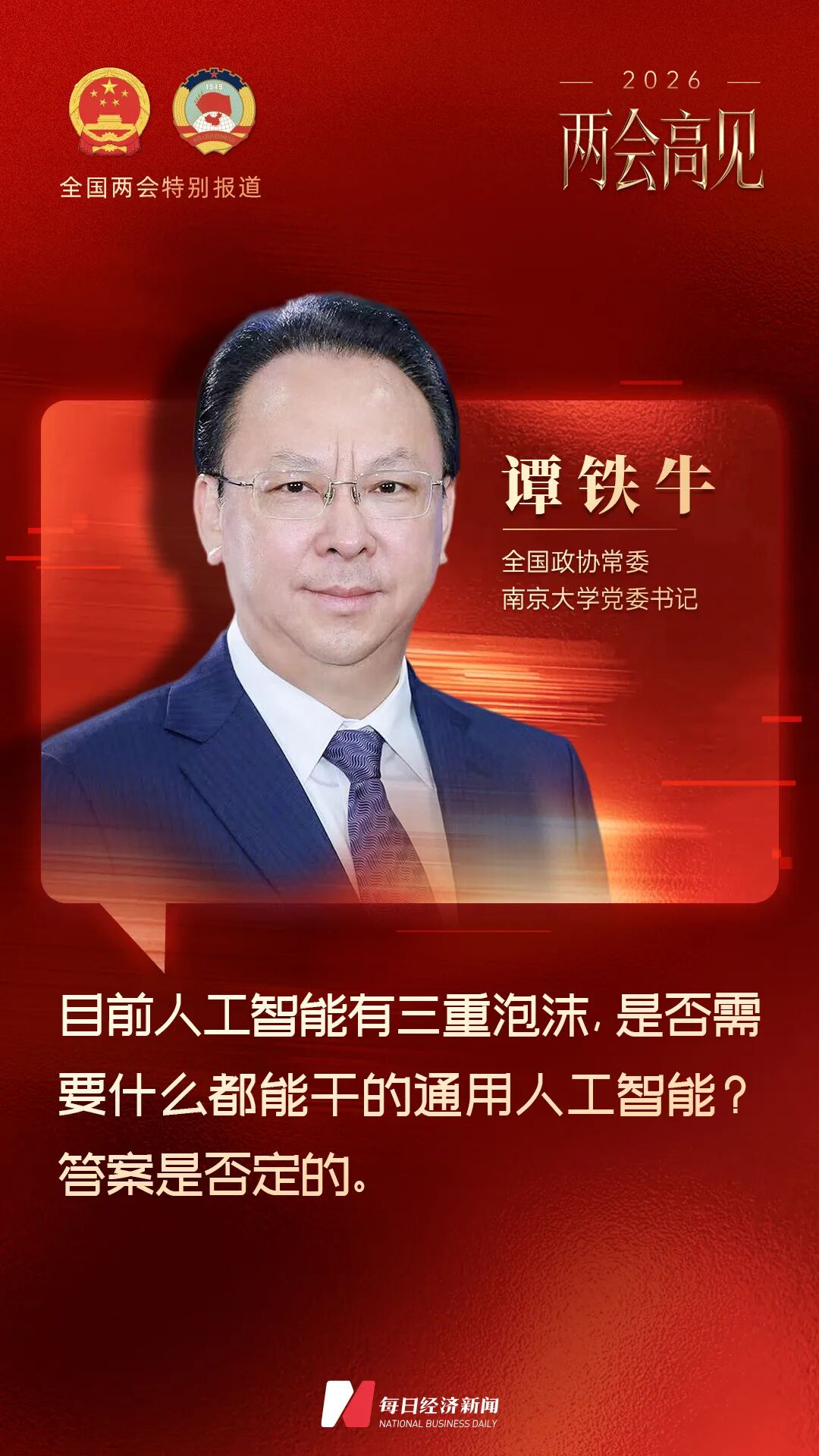 Interview with Tan Tieniu, Standing Committee Member of the Chinese People's Political Consultative Conference and Party Secretary of Nanjing University: AI Development Needs to Remove the Bubble