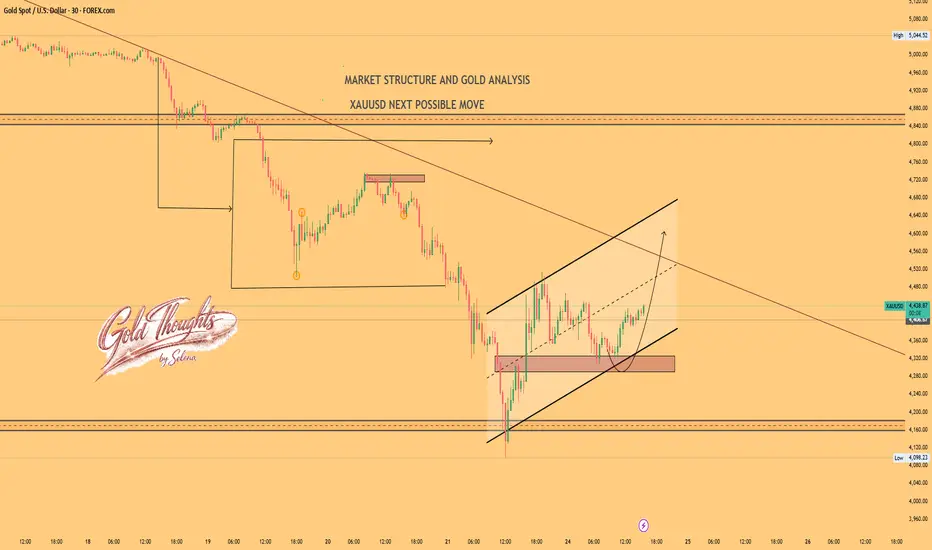 Selena | XAUUSD · 30M – Bearish Structure with Corrective Channe