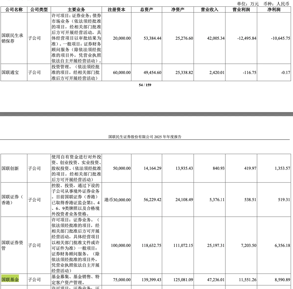 It is reported that Guolian Minsheng holds 75.5% of the equity in Guolian Fund. As of the end of 2025, Guolian Fund had total assets of RMB 1.394 billion, net assets of RMB 1.251 billion, operating revenue of RMB 472 million, and net profit of RMB 86 million.