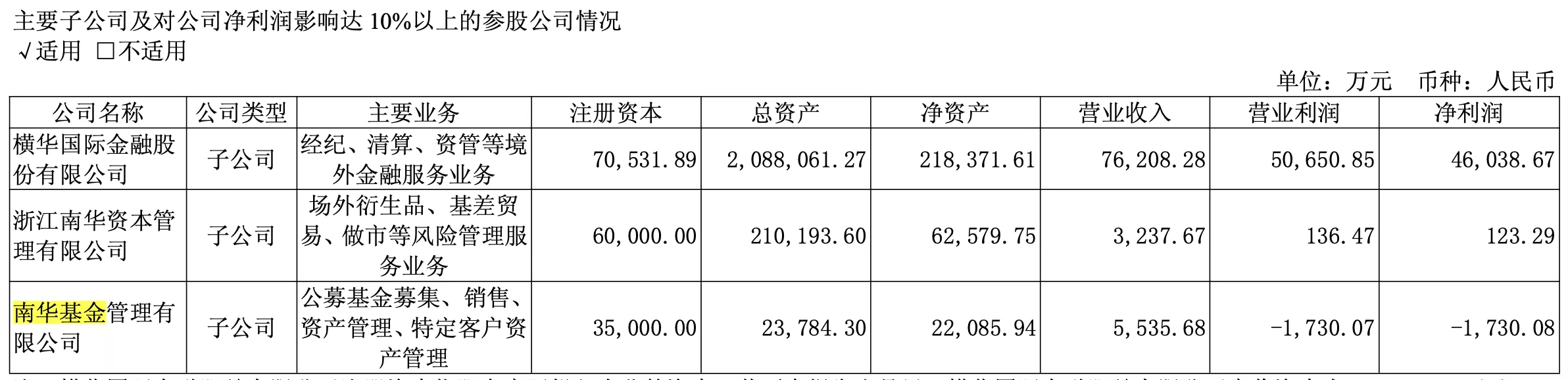 As of the end of 2025, Nanhua Fund had total assets of 23,784 million yuan, net assets of 22,085.94 million yuan, operating revenue of 5,535.68 million yuan, and a net loss of 1,730.08 million yuan.