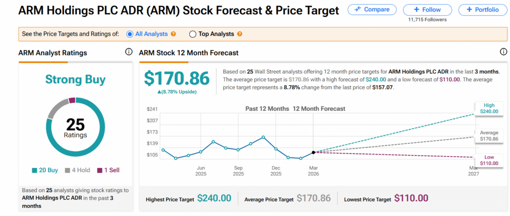 However, the average ARM price target of $170.86 only indicates about 9% growth potential.