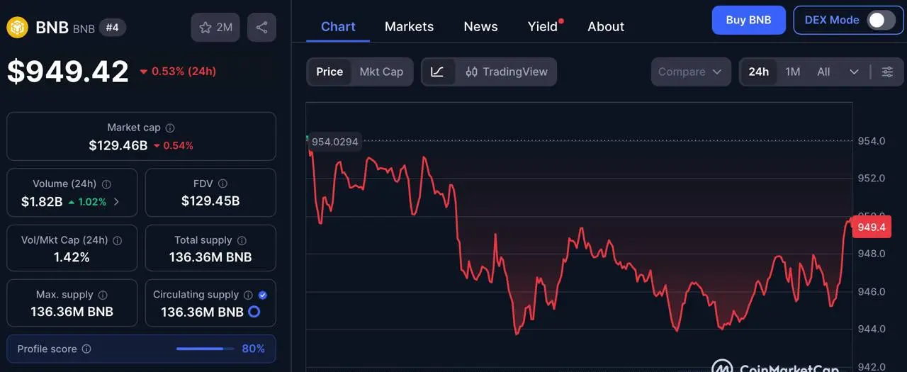 O BNB continua sendo uma força dominante na economia cripto. Com preços próximos de $949 no momento da redação, e volume diário em torno de $1,82 bilhão, o ativo continua a beneficiar-se de liquidez profunda e integrações em exchanges. Seus queimas trimestrais também oferecem redução de oferta a longo prazo, com mais de 1,36 milhão de BNB recentemente removidos de circulação na sua 34ª queima.