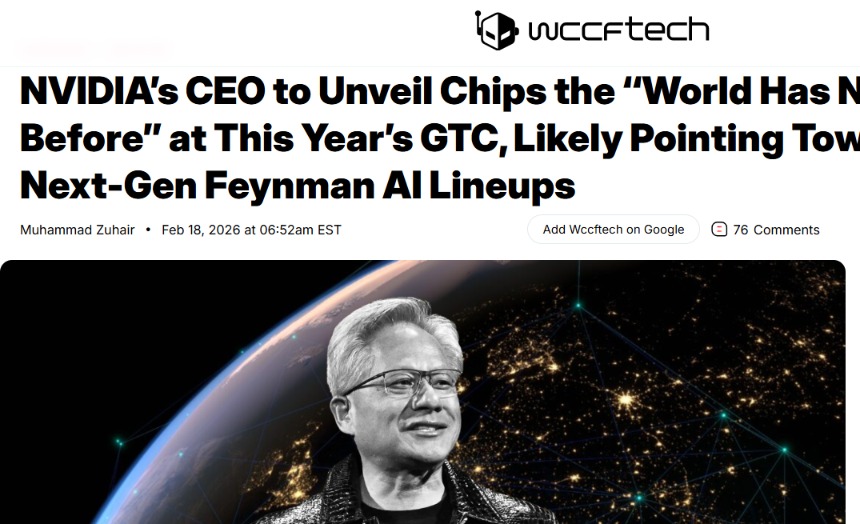 19 de fevereiro, notícias, segundo a mídia estrangeira wccftech, o CEO da Nvidia, Jensen Huang, fez uma prévia do próximo evento GTC 2026, deixando claro que irá revelar na conferência um chip totalmente novo, “inédito no mundo”, o que gerou grande atenção na indústria. Como líder no campo de chips de IA, essa grande antecipação por parte da Nvidia é vista como uma forma de consolidar ainda mais sua posição de liderança na infraestrutura de IA.