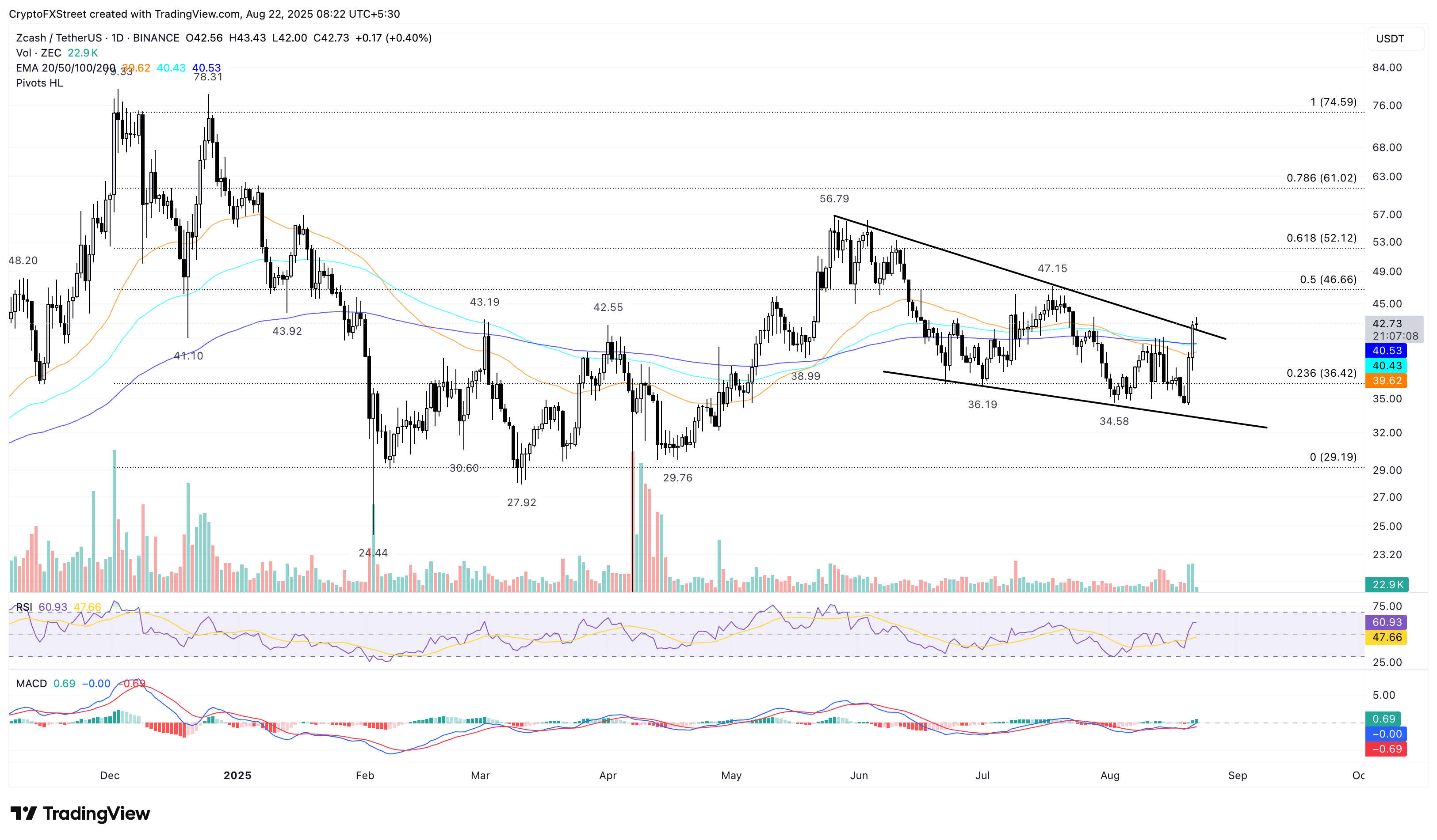 ZEC: Обратите внимание, сможет ли Отдача продолжиться до 46.66 долларов, одновременно защищаясь от пробития 200-дневной EMA