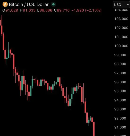 Bitcoin, tüm zamanların en yüksek seviyesinden %29'luk bir düşüşle $90K 'in altına düştü.