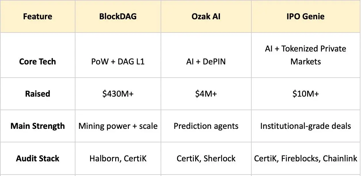 BlokDAG vs Ozak AI vs IPO Genie: 2025 AI Ön Satış Yarışını Kim Kazanır?