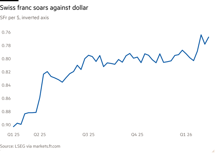 Swiss exporters have faced a double whammy of tariffs and currency strength over the past year. Switzerland and the US agreed in principle last year to cap additional US tariffs on Swiss exports at 15 per cent, down from a rate of 39 per cent, but the deal was set out in a framework understanding rather than a fully binding treaty.