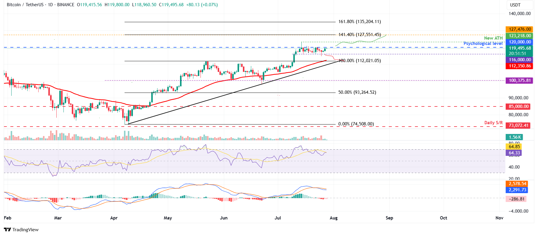 Якщо BTC щоденна ціна закриття перевищить 120 000 доларів США, то вона може продовжити ріст і досягти історичного максимуму в 123 218 доларів США.