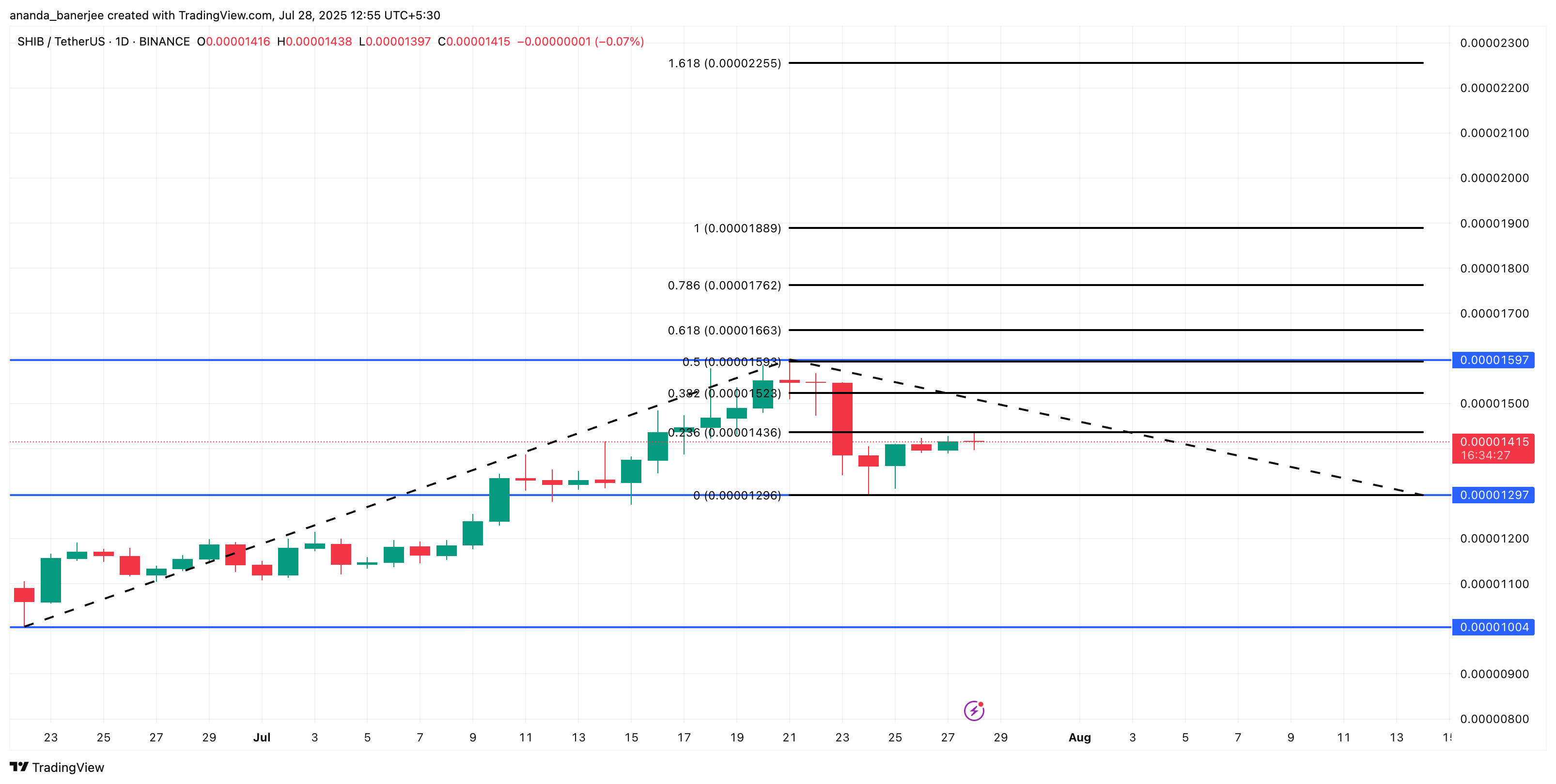 Якщо突破 0.000019 долара, SHIB може продовжити свій上涨動能 до 0.000022 долара, що означає зростання приблизно на 57% від поточного рівня. Навпаки, якщо буде втрачено ключову підтримку на рівні 0.000012 долара, короткострокова цінова структура може перейти до явного шорт позиції.