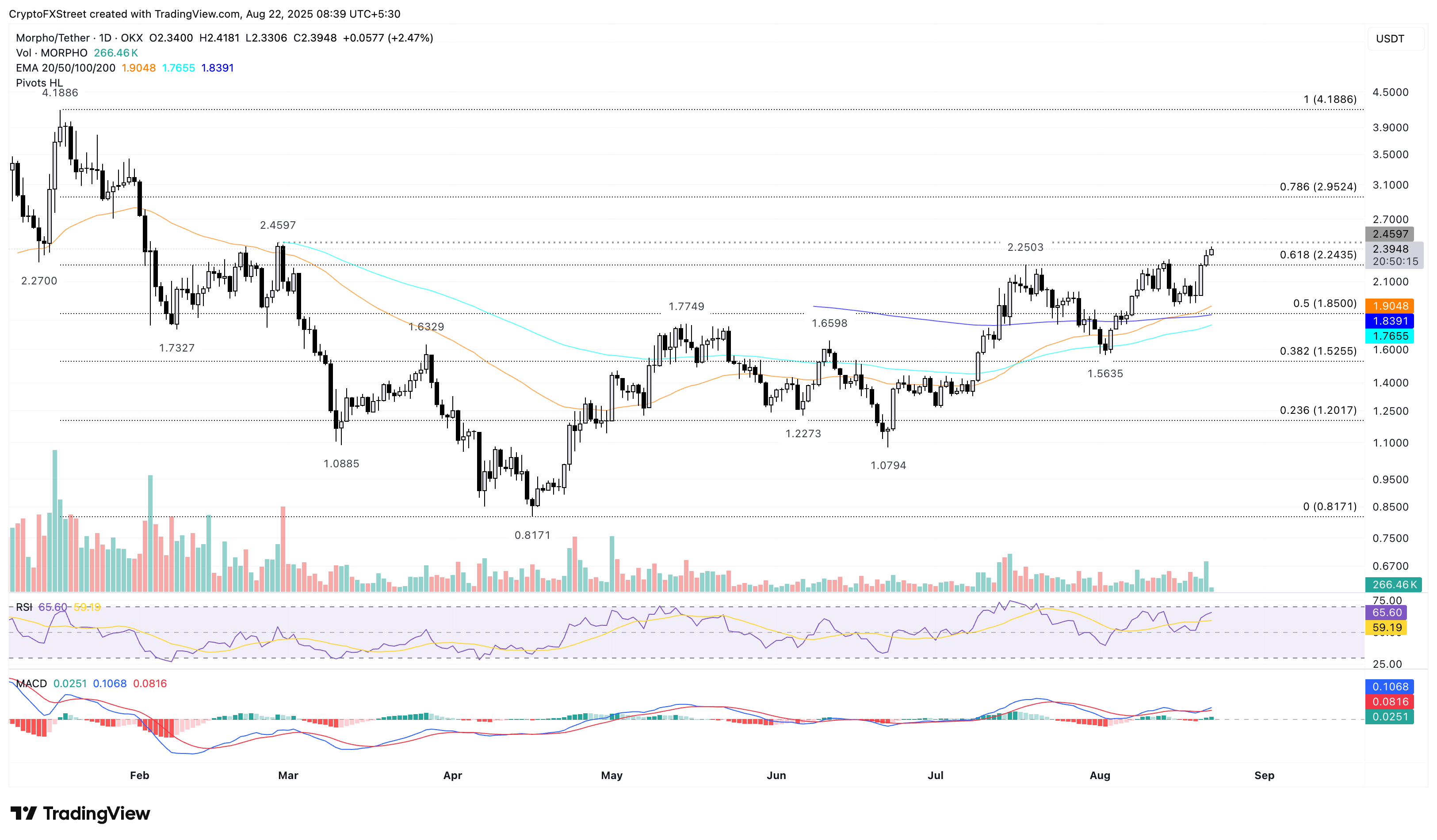 MORPHO золотий хрест助推,逼近 2.45 美元рівень спротиву