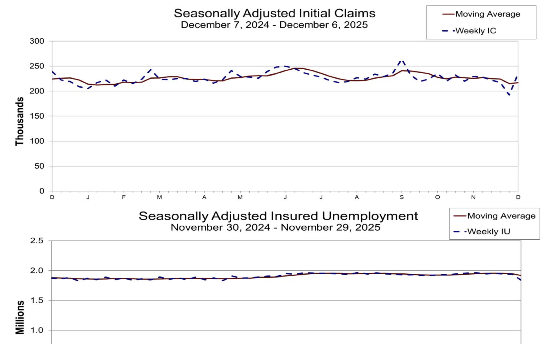 Нові дані про страхові виплати з безробіття за тиждень, що закінчується 6 грудня, свідчать про нове послаблення у ринку праці США, оскільки первинні заявки на безробіття різко зросли, а кілька ключових показників рухаються у високі напрямки.