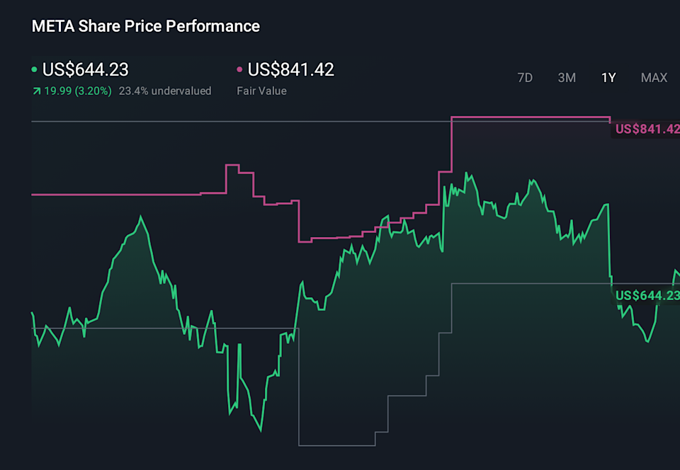 Дізнайтеся, як прогнози Meta Platforms дають справедливу вартість у 835,54 долара, що на 30% вище за їхню поточну ціну.