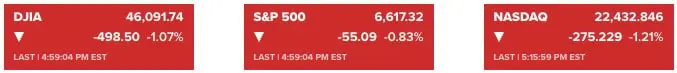 Vào thứ Ba, chỉ số Dow Jones giảm 499 điểm, giảm 1.07%; S&P 500 đã giảm liên tiếp bốn ngày, đạt mức giảm dài nhất kể từ tháng 8; Nasdaq đã giảm hơn 6% kể từ khi đạt mức cao kỷ lục vào tháng 10, mất giá trị thị trường khoảng 2.6 nghìn tỷ đô la.