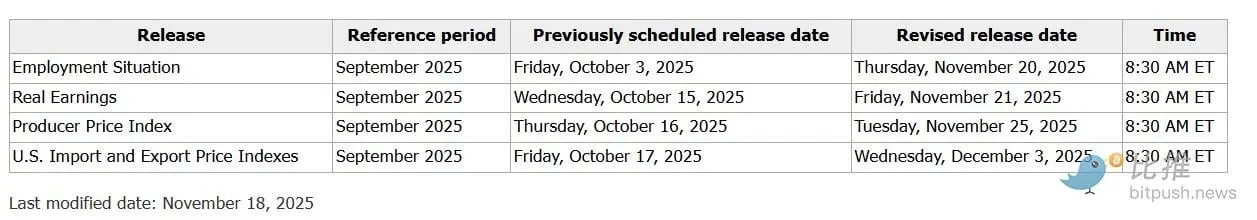 Dữ liệu kinh tế quan trọng bị thiếu trước đây do chính phủ ngừng hoạt động đang được khôi phục nhanh chóng. Bộ Lao động Hoa Kỳ xác nhận sẽ hoàn tất tất cả dữ liệu yêu cầu trợ cấp thất nghiệp hàng tuần bị thiếu trước thứ Năm tuần này và sẽ phát lại chỉ số PPI tháng 9 và chỉ số giá xuất nhập khẩu vào ngày 25 tháng 11 và 3 tháng 12.