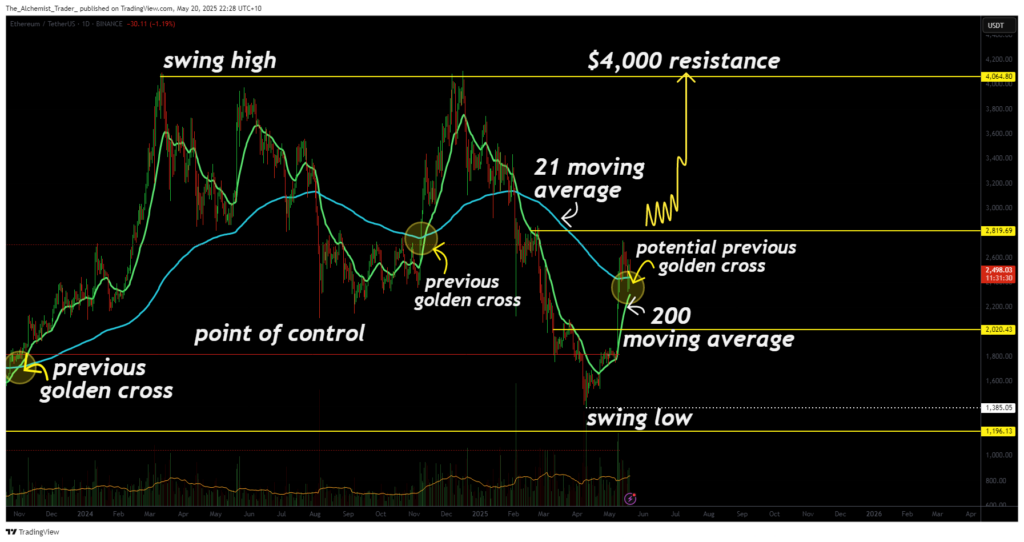 ! Sự bứt phá giá Ethereum trong tầm nhìn: Golden Cross có thể châm ngòi cho đà tăng lên 4.000 đô la - 1