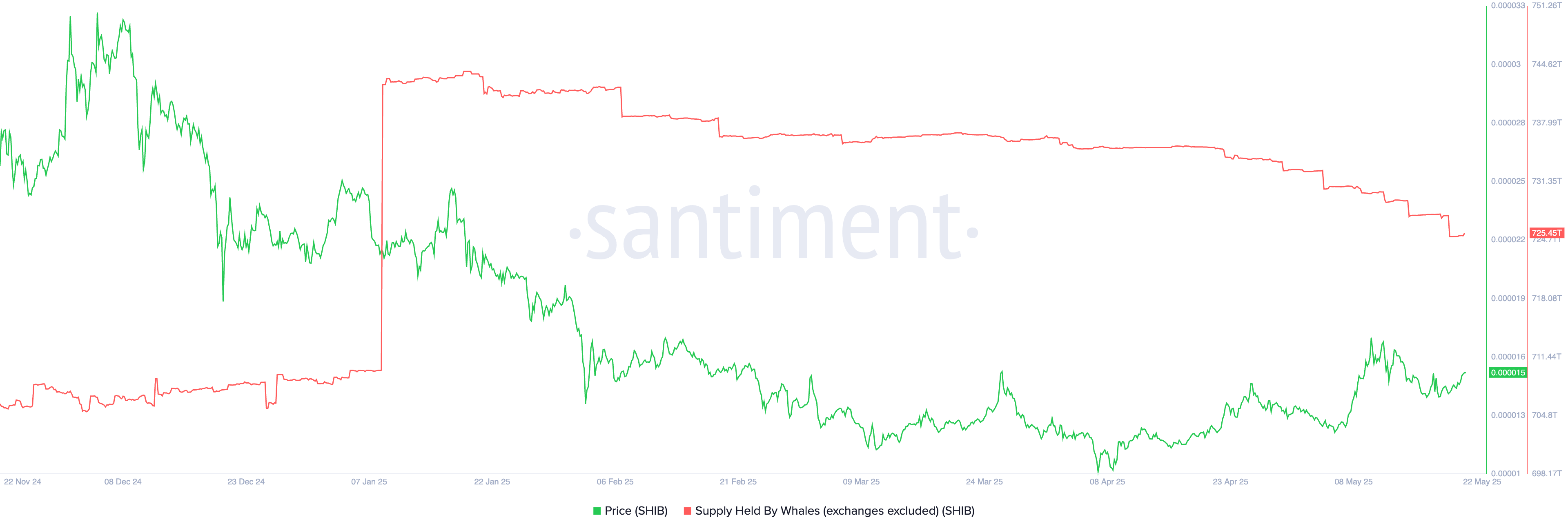 Shiba Inu đã tụt hậu so với thị trường rộng lớn hơn khi việc bán cá voi tăng cường. Dữ liệu từ Santiment cho thấy tổng nguồn cung của cá voi đã giảm xuống còn 725,45 nghìn tỷ, mức thấp nhất kể từ tháng Giêng. Cá voi đã giảm hơn 18 tỷ mã thông báo kể từ ngày 19 tháng 1.