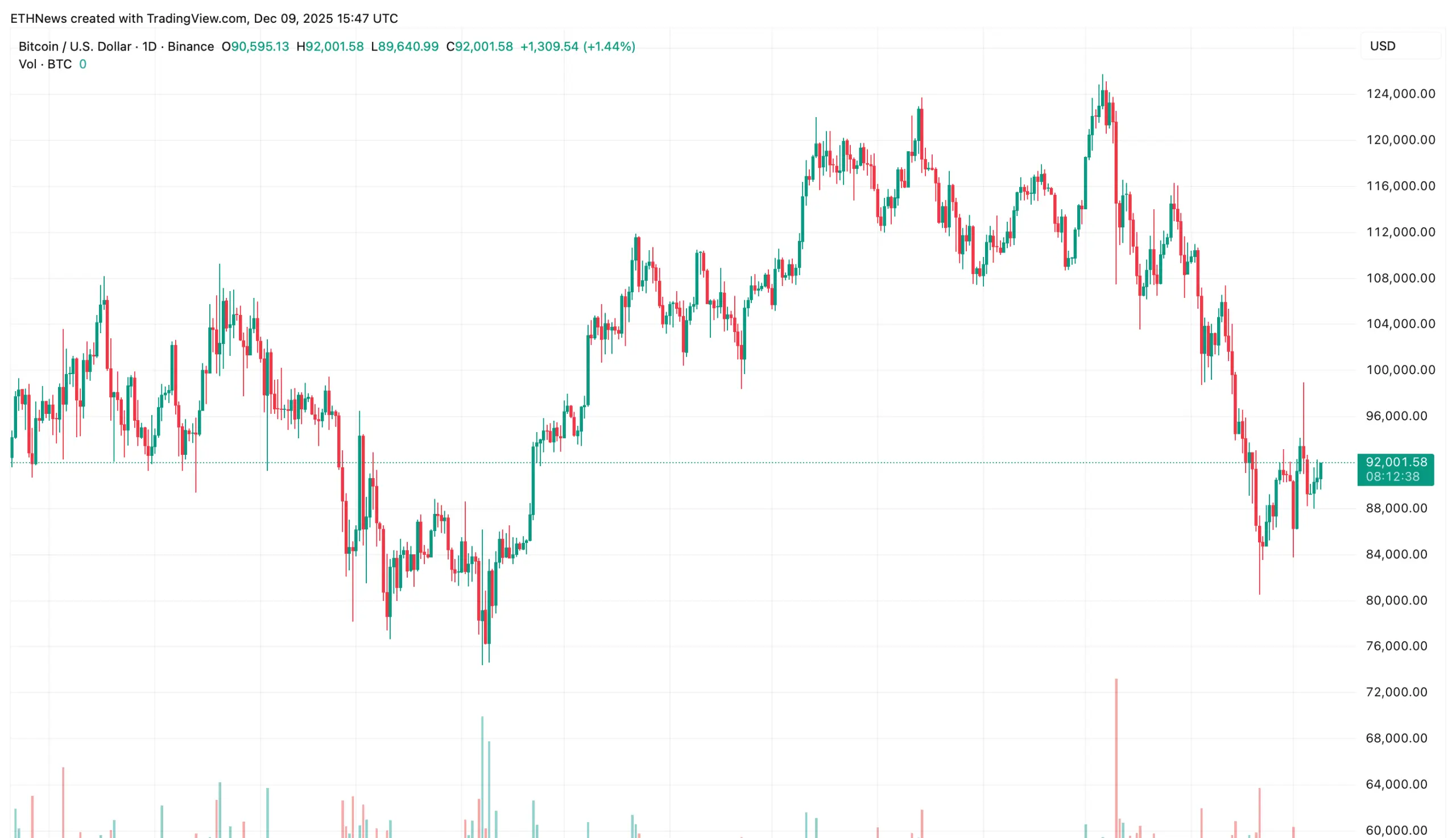 Diễn biến giá gần đây của Bitcoin phản ánh rõ quan điểm thận trọng hơn của Kendrick. Sau đỉnh lịch sử vào tháng 10, BTC bước vào giai đoạn tích lũy kéo dài. Thị trường gặp khó khăn trong việc duy trì động lực trên $90,000, cho thấy sự do dự của cả nhà giao dịch ngắn hạn lẫn nhà đầu tư dài hạn.