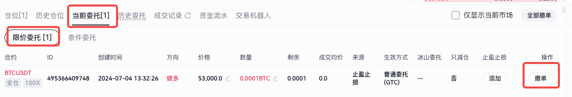委托提交後在未完成前,可在下方委托(全部委托)中查看當前委托情況,如需撤銷也可以點擊撤銷按鈕。